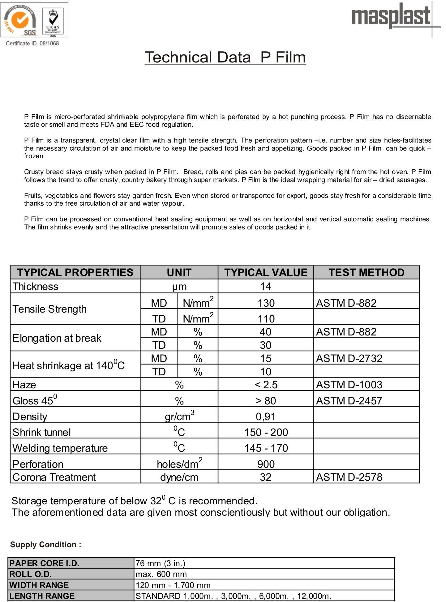 Micro perforation allows free circulation of air, moisture and quick frozen